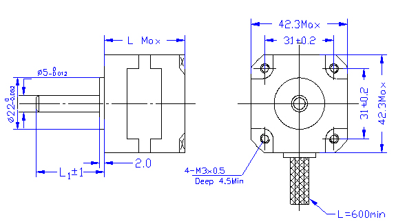 混合式步進電機 詳細說明: 步距角誤差…………………5% 最高溫升……………………80℃ Max 環(huán)境溫度范圍………………-20℃~+50℃ 絕緣電阻……………………100MΩMin.500 VDC 介電強度……………………500V AC 1 minute
