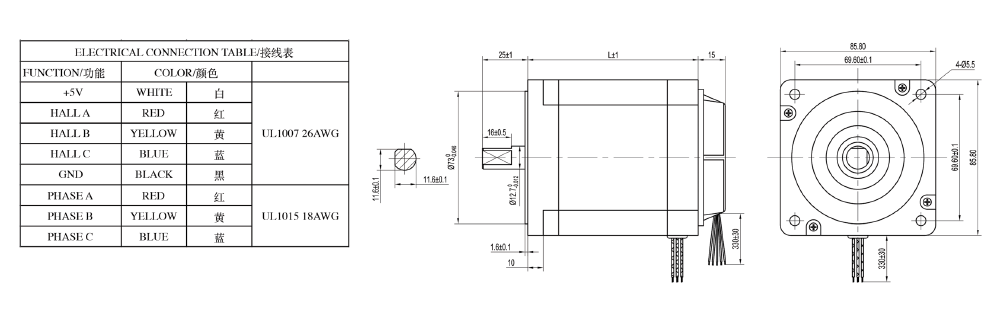 | 霍爾角度 | Hall effect angle | 120° Electrical angle |