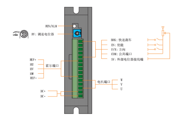 產(chǎn)品易使用、快上手。 自帶電位器可調(diào)速 接上開(kāi)關(guān)、就可以實(shí)現(xiàn)正反轉(zhuǎn)、啟停、剎車(chē) |