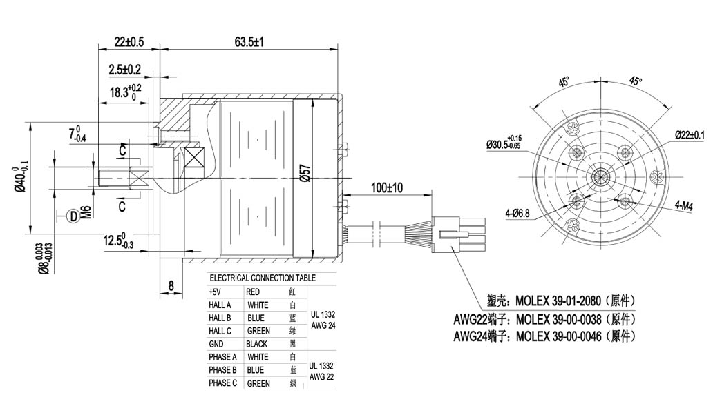 | 霍爾角度 | Hall effect angle | 120° Electrical angle |